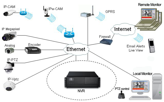 - Mạng lưới nhiều DVRs, IP camera, và các máy chủ IP.